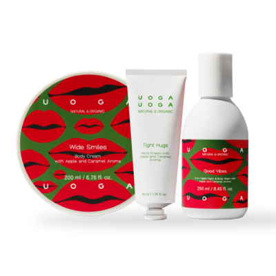 Kalėdinis natūralios kosmetikos UOGA UOGA rinkinys (kūno kremas, rankų kremas ir kūno prausiklis)